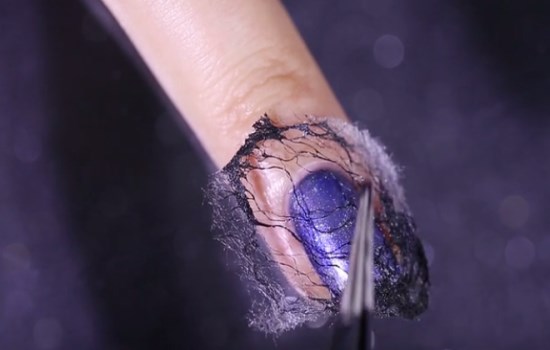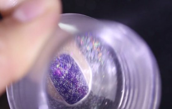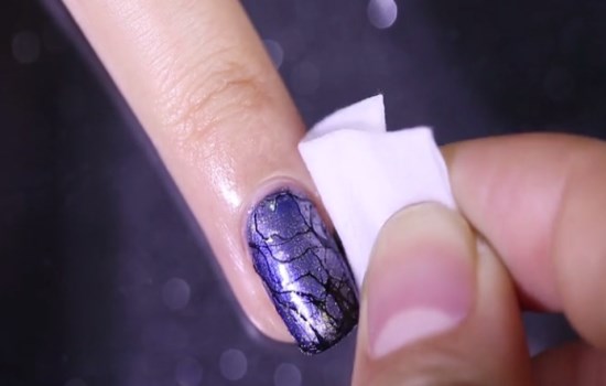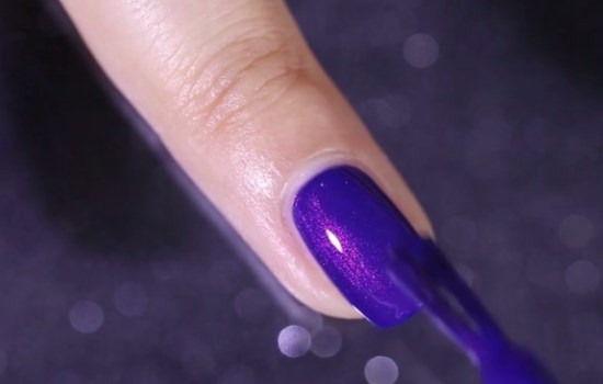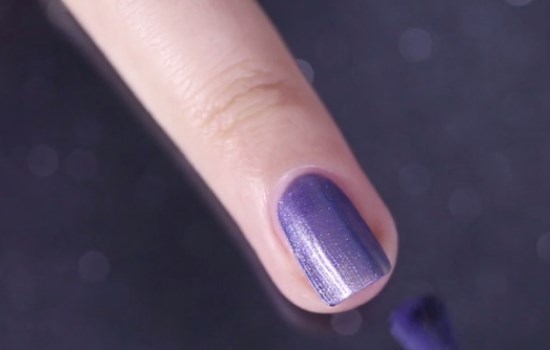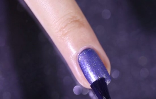 待護甲水干掉后,在甲面涂抹上藍紫色的指甲油,多涂兩層有助于顏色飽和度更高,再將其待干。