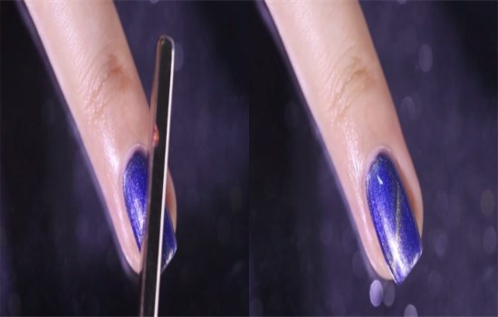 不待指甲干,就拿出磁鐵停留在甲面上吸出貓眼效果,營造出夢幻星空的效果。